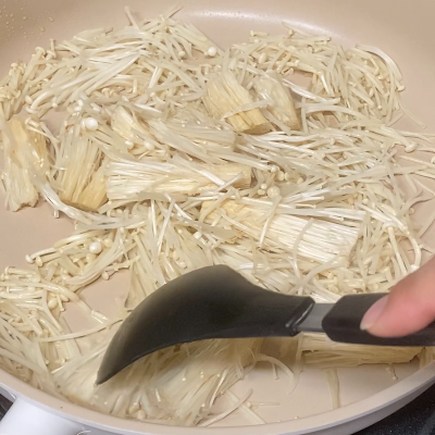 2. 팬에 올리브유를 두르고 팽이버섯을 볶아줍니다.