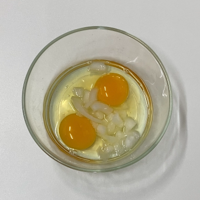 3. 계란 두알과 양파, 소금을 넣고 섞어줍니다.