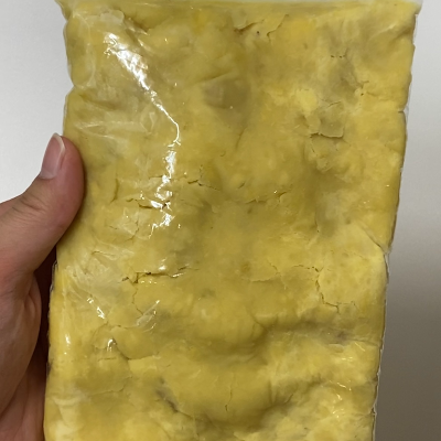 1. 삶은 고구마를 지퍼백에 넣어 으깨줍니다.